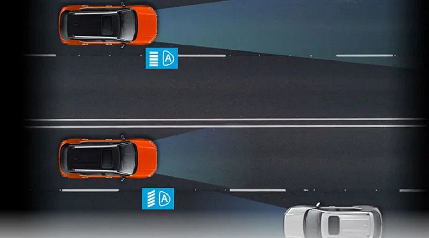 When driving at night, the auto high-beam system can automatically turn on or off the high beams.
